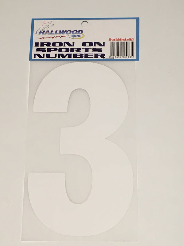 Iron on Sports Number 20cm 3 White