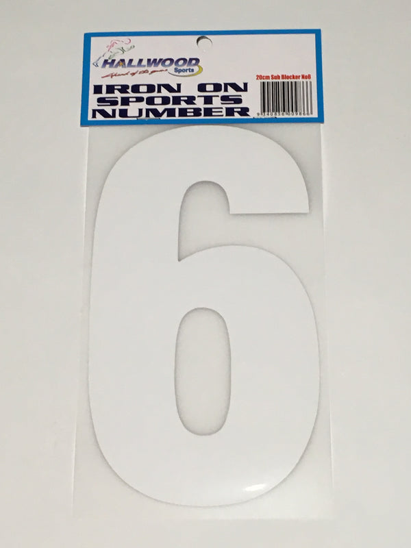 Iron on Sports Number 20cm 6 White