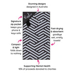 Time to throw out your old gym towel and work up a sweat in style with our stunning workout towels. The handy zip pocket means you won't be losing your phone and keys. Plus, the super absorbent material will stay dry, no matter the workout intensity.