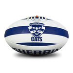 Show your support for the Geelong Cats with the AFL Club Ball! This size 5 ball is ideal for fans to play kick-to-kick with mates at the local footy oval or in the backyard. Made with the synthetic rubber material, it's perfect for all surfaces and all-weather conditions.