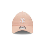 The New York Yankees Midi Logo Blush Pink Casual Classic features a raised embroidered New York Yankees logo in Blush Pink colour. Additional features include a New Era flag logo on left side, and a snap button clasp and adjustable cloth strap closure.