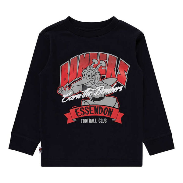 Dress your little one in footy style with the Essendon Bombers Toddlers Long Sleeve Supporter Tee. Featuring exclusively designed printed front graphics, this tee is perfect for your young footy fan. Let them showcase their team pride in comfort and style, making it an ideal addition to their wardrobe for game days or everyday wear.