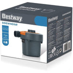 The 11.3 cm Bestway® Sidewinder™ AC Electric Air Pump features an attractive two-color design and is a great way to inflate or deflate your favorite inflatable products! This air pump comes with 3 multi-purpose valve adapters that are compatible with many products, including airbeds, pool toys, camping mats, floats and more. The AC cord is powered by a 220-240V household outlet for convenient use. This electric pump is designed to provide maximum airflow with an airflow rate of 680 L/min for fast, easy, effortless inflation and deflation. Great for in-home use.