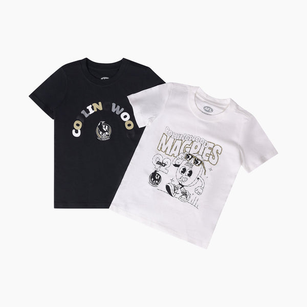 AFL Kids Twin Pack Graphic Tee Collingwood Magpies