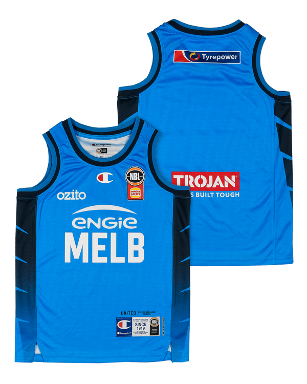 Champion brings its signature quality to the court with the Melbourne United 25/26 Youth Alternate Jersey. Designed for performance and style, this jersey is crafted with premium fabrics for superior comfort and durability. Featuring detailed team wordmarks, player name, and number in high-quality fabric appliqués and silicone Champion C and NBL logos for an authentic and top quality finish.