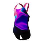 Bring a burst of energy to swimming lessons wearing our colourful, abstract-print splashback swimsuit. Ideal for active kids, the suit's comfy splashback straps are set away from the shoulder for increased mobility. Cut from quick-drying, chlorine-resistant endurance+ fabric for superb durability. Body made of 53% polyester and 47% pbt.