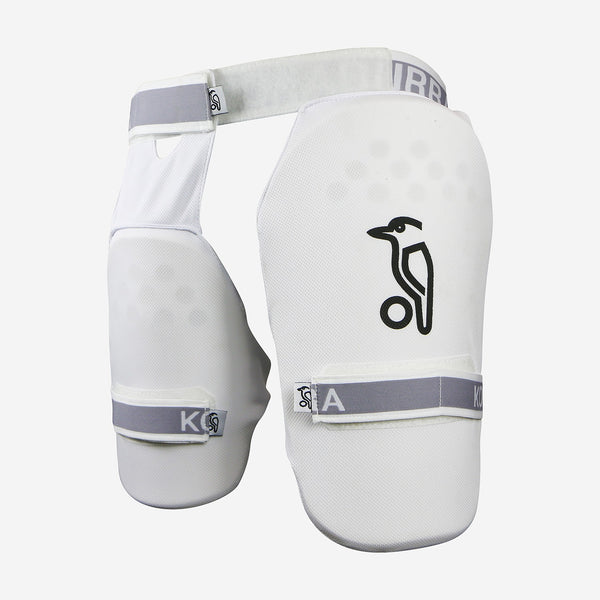 Ambidextrous design featuring a Dual Thigh and inner Thigh Guard, High Density Foam, and Adjustable Components for a guard that provides balanced protection and comfort.