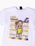 Step into retro gaming vibes with this playful NBA tee featuring Luka Doncic in classic 8-bit style. The iconic Lakers player gets a pixelated makeover that'll have basketball fans and nostalgic gamers grinning. Crafted in crisp optic white, it's the perfect blend of court culture and arcade aesthetics. Whether you're courtside or just repping your favourite player, this tee scores big on style and personality.
