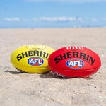 The Summer Sherrin. The AFL Beach Ball is ideal for the sand, surf or swimming pool. It comes in a waterproof neoprene material and is perfect to play footy in the water with mates.