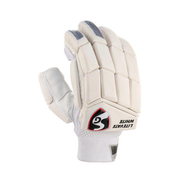 The SG Litevate White Batting Gloves are made of high quality leather palm with PU and dual density foam finger rolls, side bar piece for protection. It also features a sponge-padded spacer mesh back for a perfect comfortable fit and nylon gusset for ventilation.