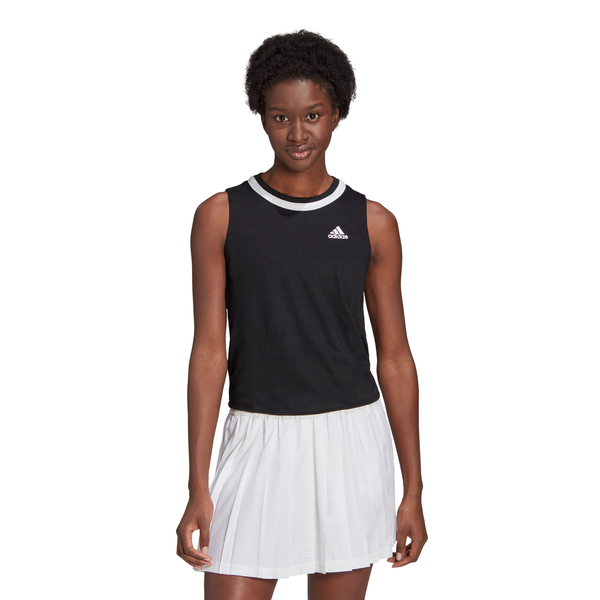 Country club style with a contemporary twist. The knot closure on the back of this adidas Club tennis tank top lets you adjust its length and fit for a look and feel that works for you. Its slightly cropped fit and contrast details around the neckline keep you standing out. Sweat-wicking AEROREADY adds comfort to the on-court appeal.
