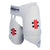 Contoured thigh guard with extra-large inner thigh pad creates an all-in-one lower body protection system