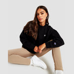 Black colourway with signature Champion logo heat seal badge on left sleeve