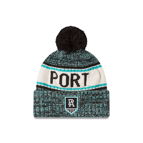 Port Adelaide Power Beanie features team coloured marl effect knit with Power team coloured stripes and team wordmark. This beanie also features a pom pom and an embroidered team logo on the front.