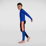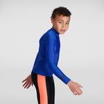 For endless adventures in the water. Whether in the pool or on the beach, this bright blue Long-Sleeve Rashie from our Essentials range has your child covered, and includes UPF40+ fabric for sun protection in and out of the water. Ideal for outdoor swimming and long days at the beach, it offers a pull-on style and a comfy fit. Made using our ECOEndurance 10 fabric for superb colour performance. Offering higher chlorine resistance than standard swimwear fabrics, it fits like new for longer with CREORA® HighClo™ and is made from 100% recycled materials, so it's better for the environment too.