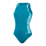 Stylish swimwear for swim, surf and stand-up paddleboarding. Sleek and modern, this teal Panelled Hydrasuit offers a streamlined, high fashion look and includes panels of our pretty leaf print