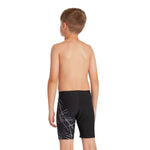 The Junior Boys Etch Mid Jammer is a classic black jammer with a twist. Featuring stylish white etch markings, this mid jammer is ideal for squad swimming, swim carnivals or swimming with friends. With a 32cm leg, drawstring waist for superior fit, triangle front lining for extra modesty.