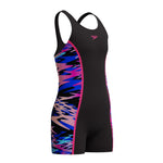 Dive into training with the Speedo Junior Girls Hyperboom Splice Legsuit! Part of our iconic Hyperboom collection, this legsuit is built for junior swimmers who mean business. Crafted from Endurance Pro fabric, it laughs in the face of chlorine and pilling while offering flexible four-way stretch for unrestricted movement. The muscleback design provides classic coverage and support through every lap. Made from 57% recycled polyester and 43% recycled polyester PBT, it's as kind to the planet as it is to your training routine. Perfect for lessons, training sessions, and active swims.